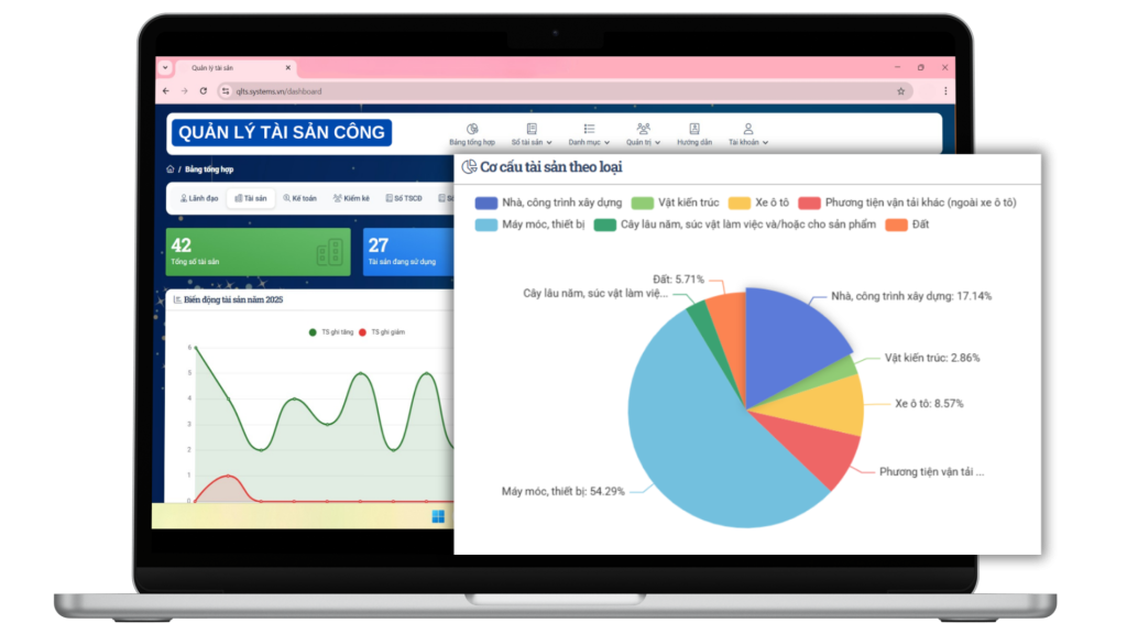 - Hệ thống báo cáo thông minh (Dashboard): Lãnh đạo có thể dễ dàng theo dõi biến động tài sản qua các biểu đồ động và dashboard trực quan theo thời gian thực.